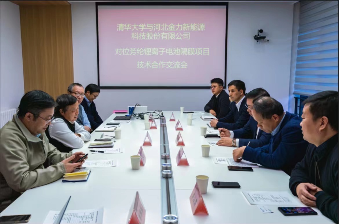2023年2月15日上午,金力股份与清华大学化学系举行的对位芳纶锂离子电池隔膜项目技术合作交流会暨签约仪式在清华大学英士楼召开。中国科学院院士、清华大学化工系教授杨万泰,清华大学化工系副主任吕阳成教授,清华大学技转院项目主管李焦丽,清华大学化工系黄延宾副教授、庹新林副教授,邯郸市发改委领导,邯郸市工业和信息化局领导,邯郸市科技局领导,金力股份董事长袁海朝,金力股份研究院常务副院长苏碧海等相关领导出席本次会议并参加签约仪式。