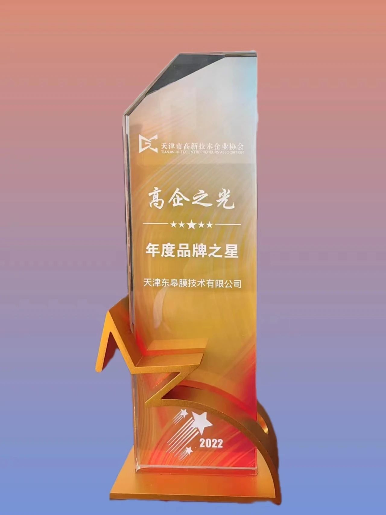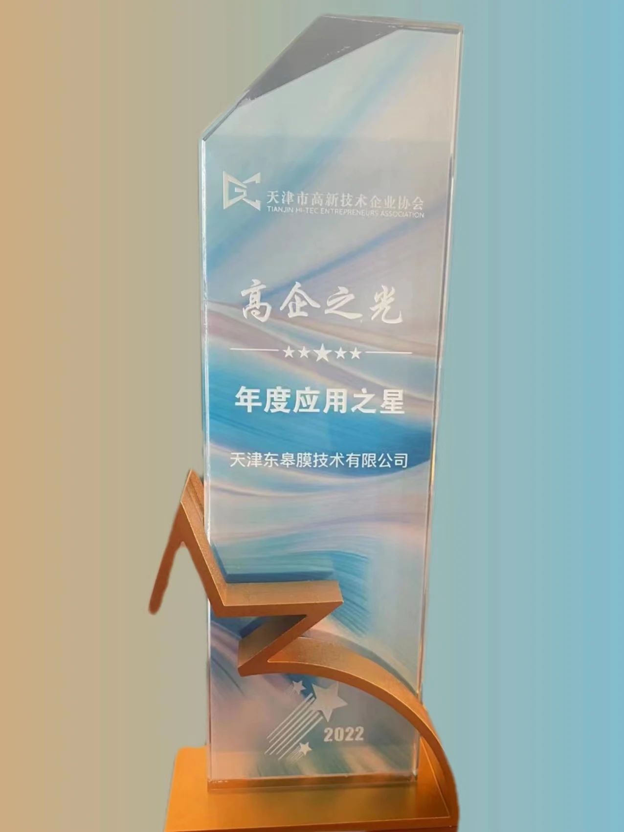 2023年3月,天津高新技术企业协会举办了“高企之光”颁奖盛典,参加此次盛典有300余家企业,经过报名、筛查、网络投票等程序,并通过主办方审核,天津东皋膜荣获“年度应用之星”和“年度品牌之星”两项奖彰。