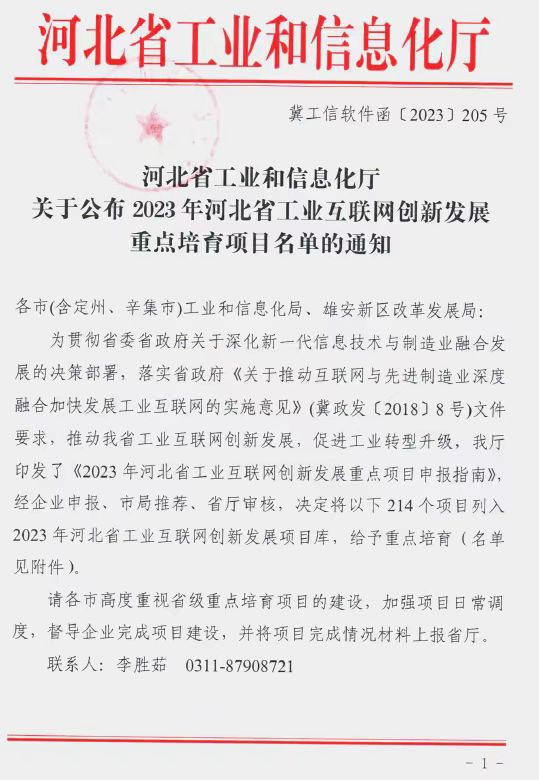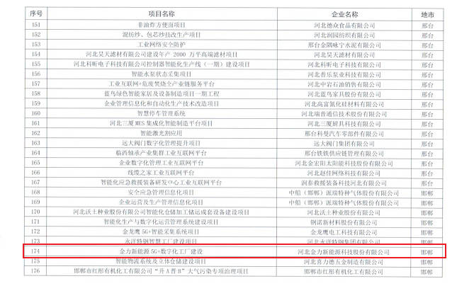 近日,河北省工业和信息化厅公布“关于公布2023年河北省工业互联网创新发展重点培育项目名单的通知”,河北金力新能源科技股份有限公司(以下简称:金力股份)5g 数字化工厂建设项目入选。